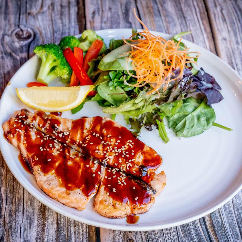 Grilled salmon filet, sprinkled with Togarashi and house teriyaki sauce.