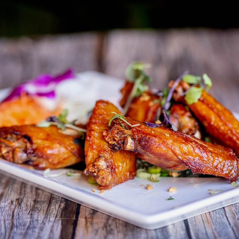 Grilled pork skewers marinated with house special sauce, smoked chili(Jaew), tamarind sauce.